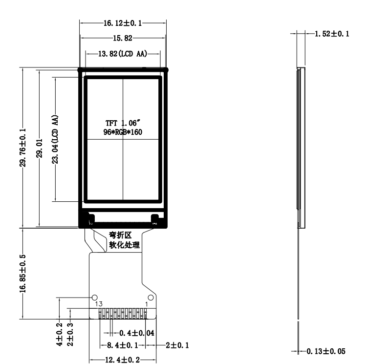Product name : 1.06 Inch 96x128 Resolution IPS TFT LCD Display