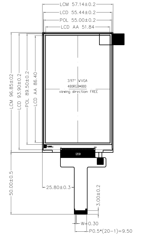 Product name : 3.97 Inch 480*800 TFT Color LCD Display